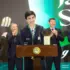 Жавохир Синдаров с президентом Шавкатом Мирзиёевым и дедушкой Комилом Синдаровым. Фото: Пресс-служба президента Церемония чествования шахматиста, победителя ...