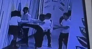 Кадр видео. В понедельник в социальных сетях появился ролик, на котором видно, как несколько мальчиков младших классов в одной из школ издеваются над одноклассницей. Женщина, предположительно мать девочки, учащейся 4-го класса школы №300 Сергелийского района, говорит, что пять мальчиков окружили и гнали её дочь с четвёртого на первый этаж школы, не отпуская её. Она рассказывает, что один мальчик ударил девочку кулаком по плечу, другой пнул по рюкзаку, кто-то из них пытается пнуть ...