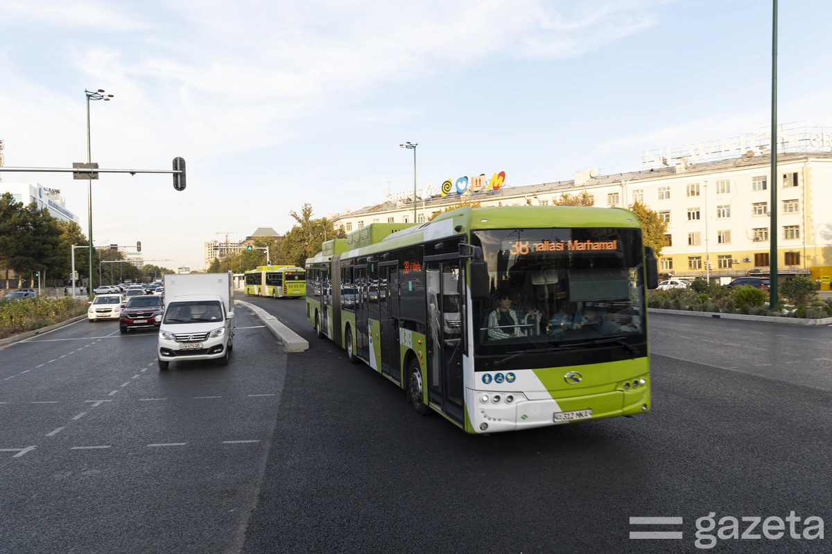 - по проспекту Амира Темура — от перекрёстка Уч Кахрамон до Северного вокзала (11 км);