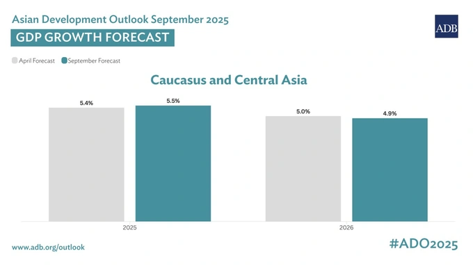 По оценке АБР, темпы роста региона в 2025 году ожидаются на уровне 4,8% (против 4,9% в апреле), а в 2026 году — 4,5% (против 4,7%). Инфляция в этом году снизится до 1,7% благодаря удешевлению продуктов питания и энергоносителей, а в 2026 году может вырасти до 2,1%.