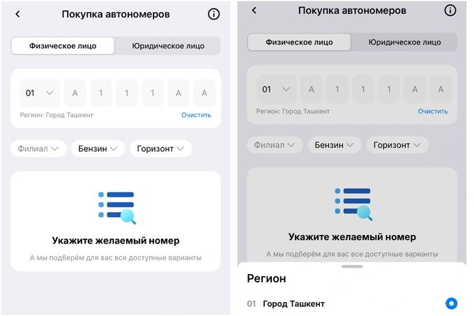После выбора комбинации и подачи заявки в приложении номер будет зарезервирован за пользователем в течение 24 часов для физических лиц и 72 часов для юридических лиц.