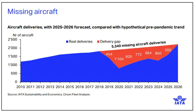 С 2018 года недополучено 5340 самолётов. Источник: IATA