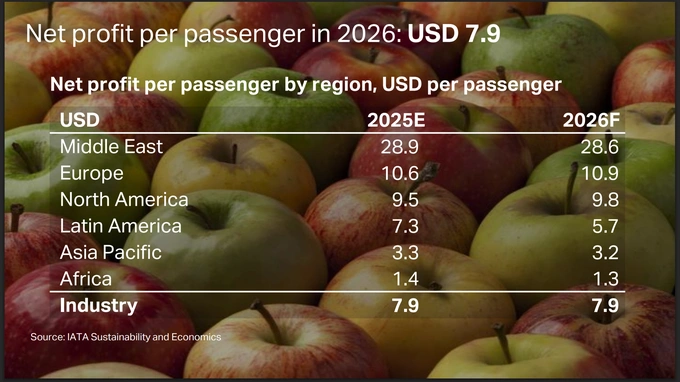 Региональная картина также остаётся неравномерной. Если Африка замыкает глобальный рейтинг прибыльности, то ближневосточный регион, по данным IATA, является «чемпионом» по маржинальности за пассажира.