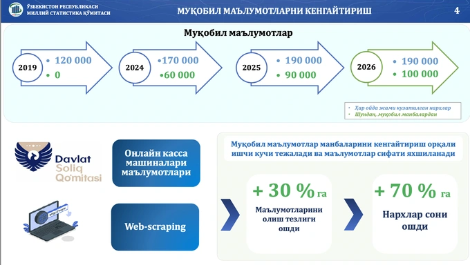 По данным Национального комитета по статистике, в декабре 2025 года было собрано более 190 тысяч ценовых наблюдений, около половины из которых — по технологии CAPI, а примерно треть — за счёт данных онлайн-касс.
