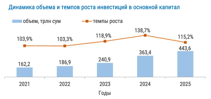 После активного 2024 года, когда объём инвестиций в основной капитал в Узбекистане вырос почти на 39%, 2025-й демонстрирует возвращение к сдержанной траектории роста. Об этом свидетельствуют данные Национального комитета по статистике.