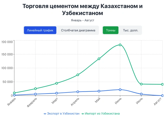 Согласно статистике, в августе поставки казахстанского цемента в Узбекистан прекратились. «Газета» направила запрос в Министерство экономики, промышленности и торговли.