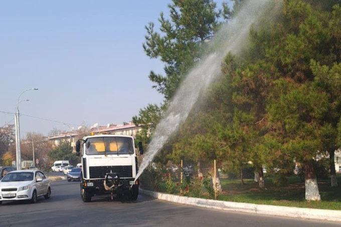 В летне-осенний период на центральных улицах Ташкента будут дважды в день проводить полив и собирать песок и пыль с использованием спецтехники.