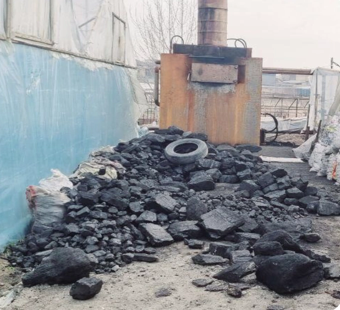 Печь для отопления теплицы, уголь и шины. Фото: Комитет по экологии.