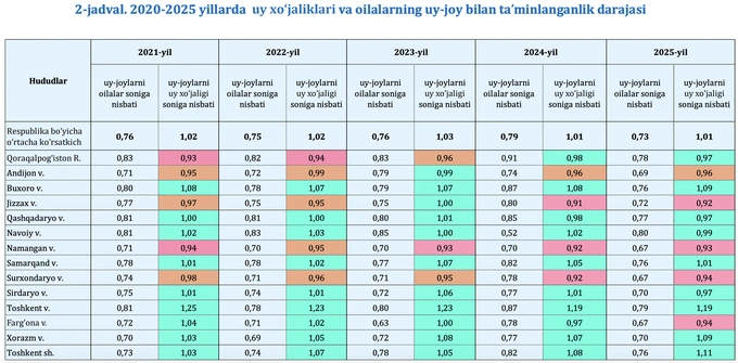 При этом Самаркандская область по-прежнему остаётся регионом с наименее доступным жильём относительно доходов населения.