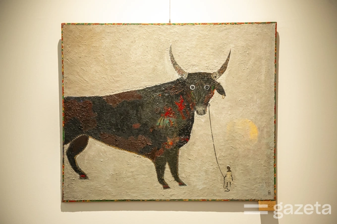 Мастер не только представил ретроспективу своих полотен. В экспозиции с десяток картин, написанных в прошлом году. Художник остаётся верен своей палитре: «Гилам», «Ходжикент», «Чёрный Байер», «Мелодии весны», «Волчица» и даже политически заряженная «Трагедия сектора Газа» строятся на резких геометрических формах и напряжённых цветовых столкновениях.