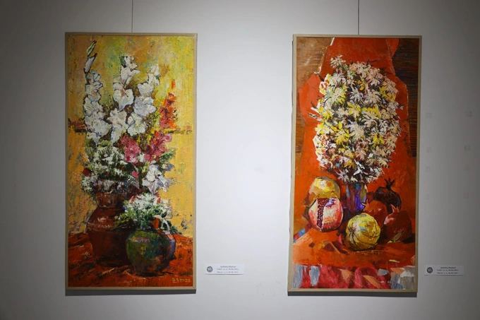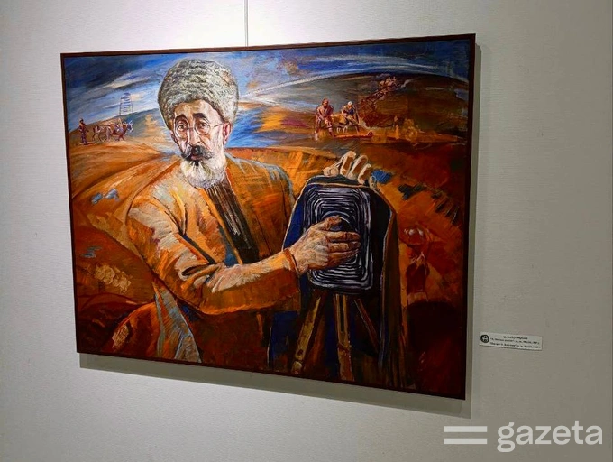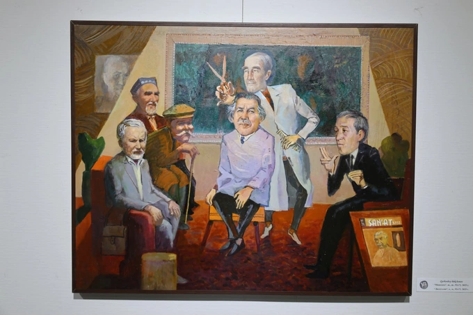 Основной акцент экспозиции — работы 73-летнего Курбанбая Бекчанова. Он — художник поколения, которое ещё помнит, что такое живопись как дисциплина, но уже умеет позволить ей быть темпераментной. Его портреты — от исторических фигур вроде первого узбекского фотографа и кинооператора Худайбергена Деванова до «Подрядчика Саида» или дружеской «Дискуссии» — написаны широкой, уверенной кистью. Цвет — не вспомогательная среда, а полноценный персонаж: энергичный, экспрессивный, иногда слишком громкий, чтобы оставаться в рамках реалистической манеры.