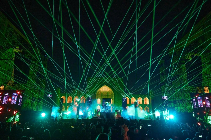 Сравнивать Жарра обычно пытаются с группой Kraftwerk — за математический расчёт электронных ритмов, и с Дэвидом Копперфильдом — за способность заставлять реальность поверить в воображение. На Регистане француз выступил, как гибрид обоих, обставил шоу по своим правилам.