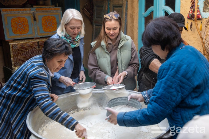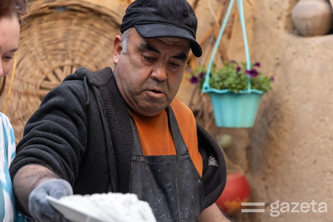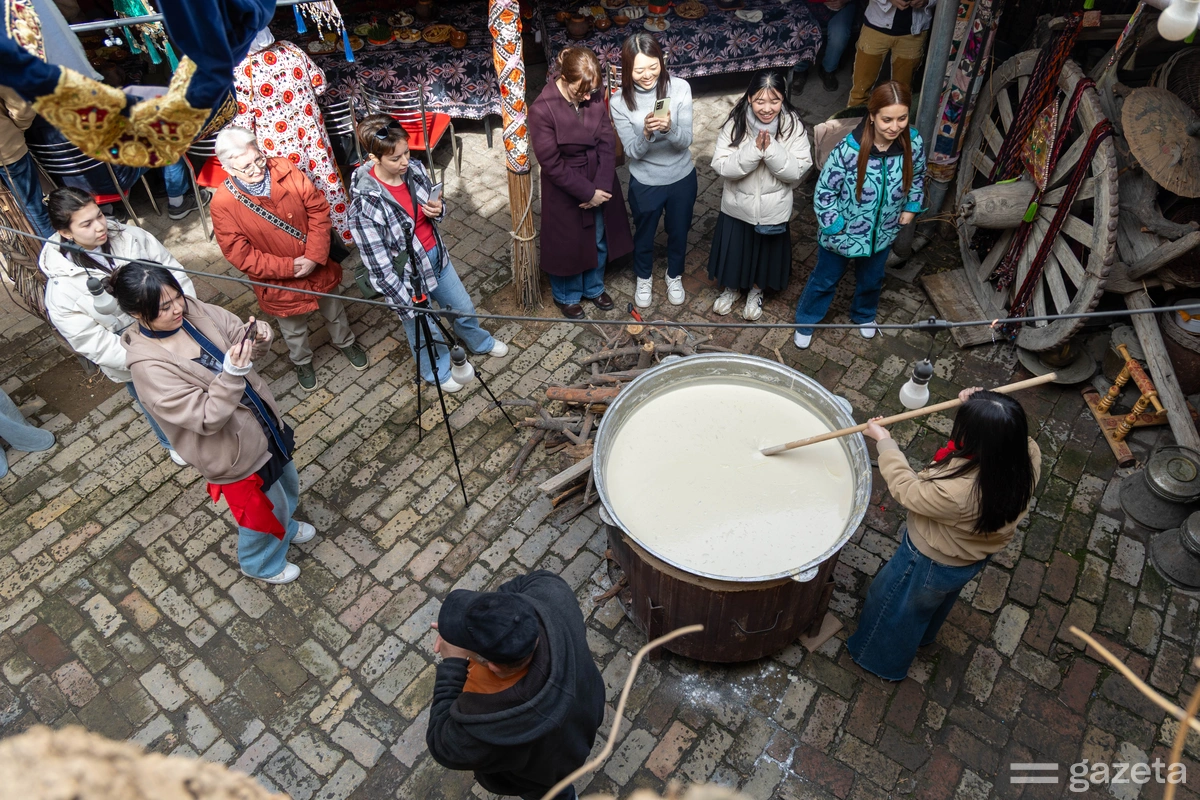 «Омон-ака относится к процессу невероятно щепетильно. Сумаляк у него всегда получается идеально гладким, без комочков и взвесей, а по текстуре напоминает шоколадную пасту. Бывает, к ночи все уже умаялись, сил ни у кого нет. Мы говорим: „Омон-ака, закрывайте. Мы больше не можем!“ А он отвечает: „Нет, ещё не доварился“. Доливает воду и продолжает. Будет стоять до последнего, падать от усталости, но не отойдёт от костра, пока не сделает лучший сумаляк. За это мы его очень ценим», — рассказывает хозяйка галереи.