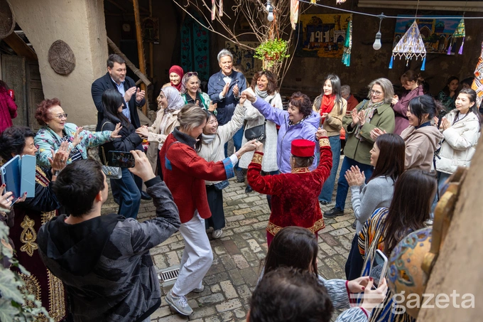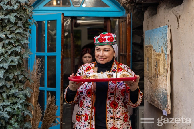 Первое, что встречает гостей, — густой запах костра и пульсирующий бой дойры. В тесном, уютном дворике яблоку негде упасть. Под задорные национальные мелодии в пляс пускаются все: и солидные женщины в бархатных, расшитых золотом чапанах, и молодые туристки, которые впервые пытаются поймать ритм узбекского танца.