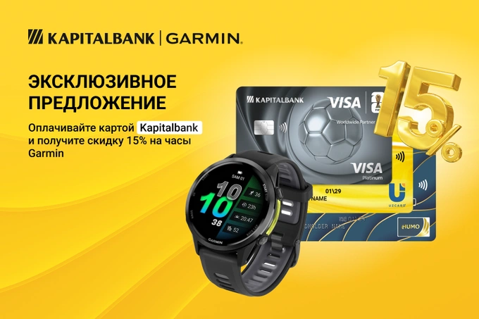 При оплате покупок в магазинах Garmin любыми картами АКБ «Капиталбанк» можно получить скидку 15%.