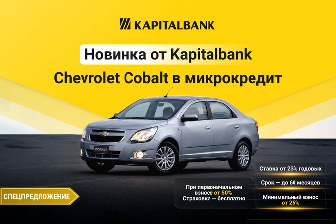 АКБ «Капиталбанк» запускает выгодные условия на покупку Chevrolet Cobalt по программе «Выгодная инвестиция — 2» для самозанятых граждан и индивидуальных предпринимателей.