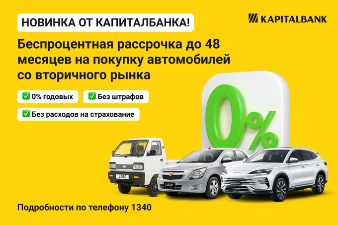 В рамках проводимой работы по внедрению исламского банкинга, а также в целях развития и поддержки малого бизнеса в Узбекистане АКБ «Капиталбанк» предлагает новый финансовый продукт — беспроцентную рассрочку на покупку автомобилей для самозанятых лиц и индивидуальных предпринимателей сроком до 48 месяцев.