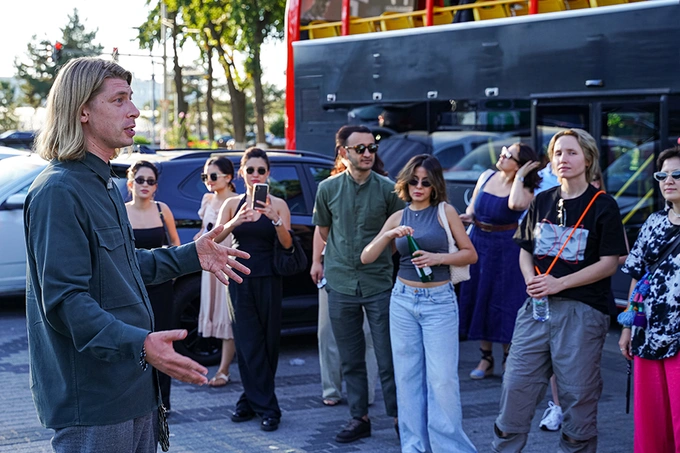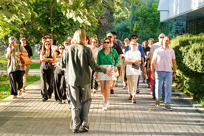 Экскурсия по Ташкенту стала продолжением визуального проекта — возможностью увидеть архитектуру вне экрана. Участники гуляли по районам, где модернизм не утратил свою суть: жилые кварталы, здания институтов, культурные центры. Через рассказы о фасадах, формах и окнах город становился ближе, понятнее и теплее. Экскурсия превратилась в своего рода путешествие по памяти — одновременно исследовательское и личное.