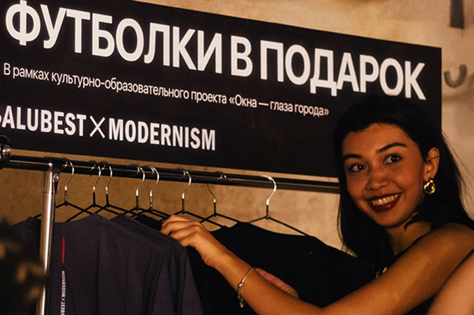 Чтобы сделать проект ближе людям, была создана коллекция мерча — 12 000 футболок с изображениями культовых зданий эпохи ташкентского модернизма. На каждой футболке — конкретное здание и имена архитектора, стоящих за ним.
