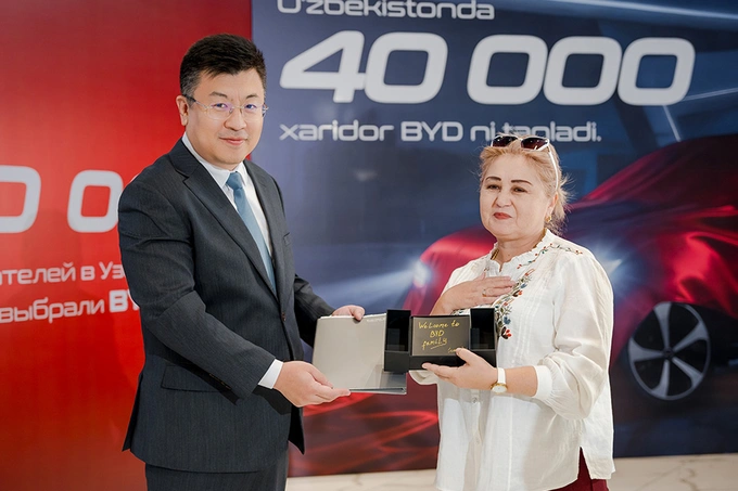 Компания BYD провела торжественную церемонию передачи своего сорокатысячного автомобиля в Узбекистане, ознаменовав тем самым еще одну важную страницу в истории бренда. Ключи от BYD Song Plus DM-i UzPride — гибридного внедорожника D-класса, адаптированного под местные условия и ставшего символом национальной гордости, были вручены господином Айваном Цао, управляющим директором BYD по Центральной Азии и Кавказу, региональным представителем одного из крупнейших в мире производителей автомобилей на новых источниках энергии (NEV) — BYD.