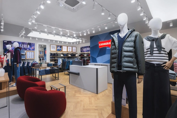 Carrera Jeans выходит на рынок Узбекистана в формате фирменного магазина. Это не корнер, а отдельное пространство, где бренд представлен в полном объёме — все ключевые модели, посадки и размеры собраны в одном месте. В ассортименте представлены мужская и женская линейки. Цены на брюки начинаются от 938 тыс. сумов, на джинсы — от 1,032 млн сумов.