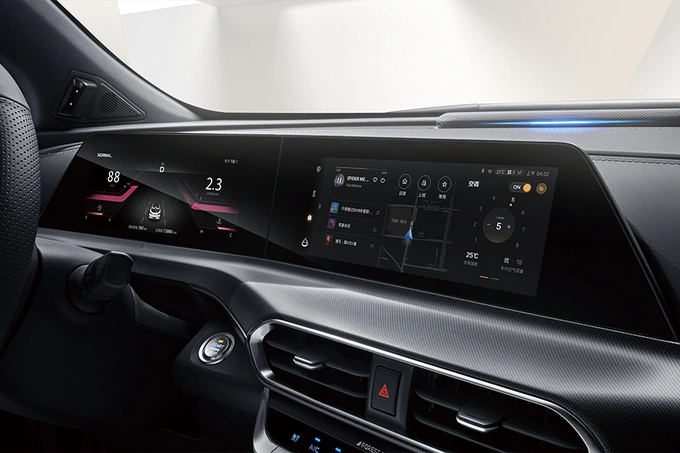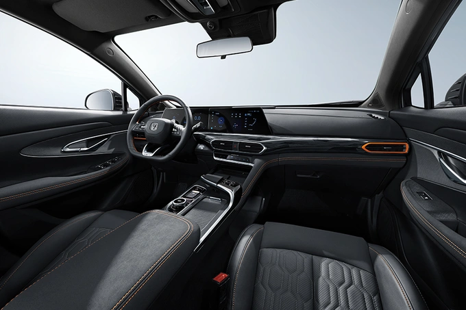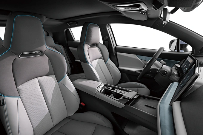 Интерьер выполнен в минималистичном стиле и оснащён всем необходимым для комфортной и безопасной поездки: кожаная отделка салона, цифровая панель управления, мультимедийная система с широким экраном и интеллектуальные ассистенты водителя. Водитель может выбирать один из трёх режимов движения — Eco, Normal или Sport, чтобы подстроить автомобиль под стиль езды и дорожные условия.