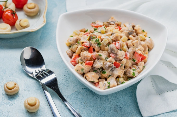 Грибы и курица — классическое сочетание. В этот салат мы добавили всего несколько ингредиентов и он заиграл совершенно другими красками.Реклама на Gazeta