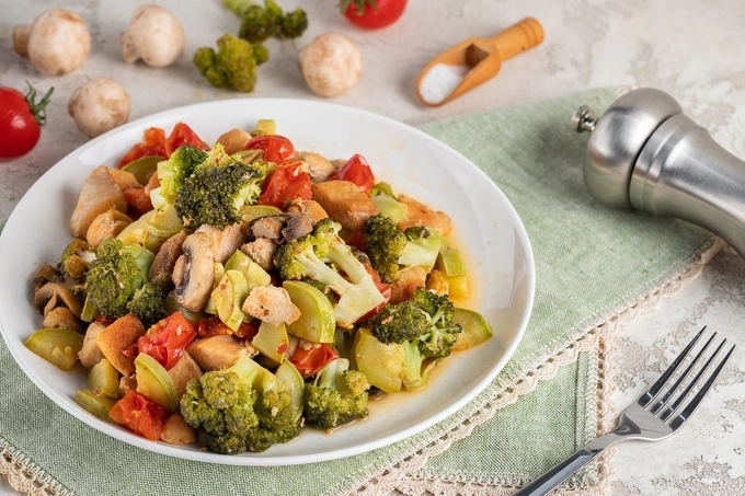 Этот вкусный тёплый салат может с лёгкостью заменить ужин или обед тем, кто следит за своим питанием и избегает лишний калорий.