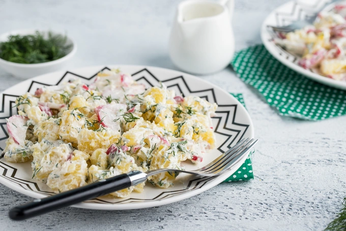 Этот тёплый салат вполне может заменить гарнир или стать полноценным перекусом.