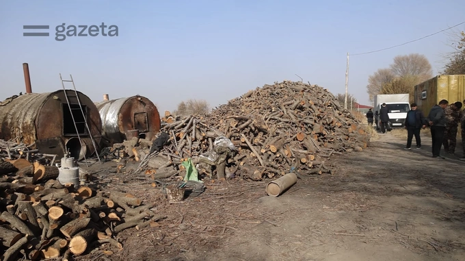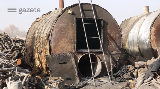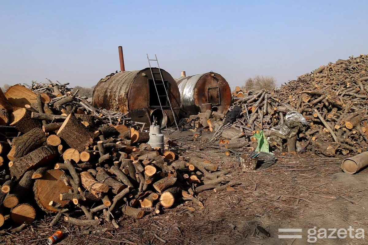 Корреспонденты «Газеты» и других СМИ обнаружили на месте большие объёмы древесины и крупные металлические цистерны промышленного типа, используемые как пиролизные камеры для обжига древесины (метод обжига без доступа кислорода).