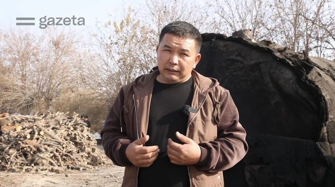 Он рассказал, как проходит процесс обжига угля: «В месяц может выйти 10−20 тонн — зависит от заказов. Сжигаем только дрова… Дым идёт два-три часа, потом уголь доготавливается на собственном жаре».