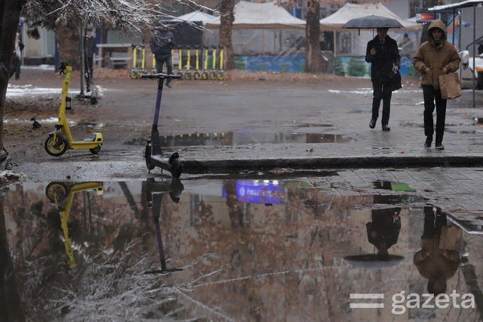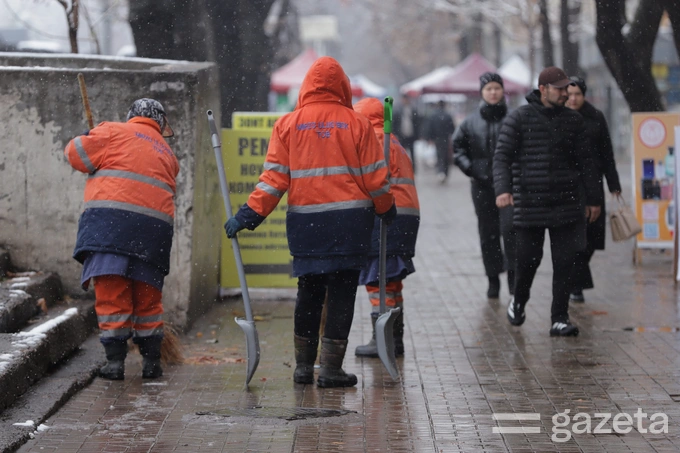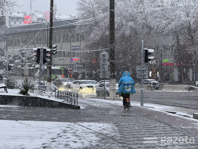 После периода дождливых дней, последовавшего за засушливыми осенью и началом зимы, с раннего утра четверга в Ташкенте идёт снег. Фоторепортаж «Газеты».