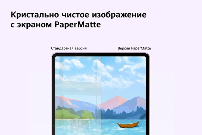 - экран PaperMatte нового поколения, который создаёт эффект настоящей бумаги и защищает глаза специальным антибликовым нанослоем, снижающим световые блики на 99%;