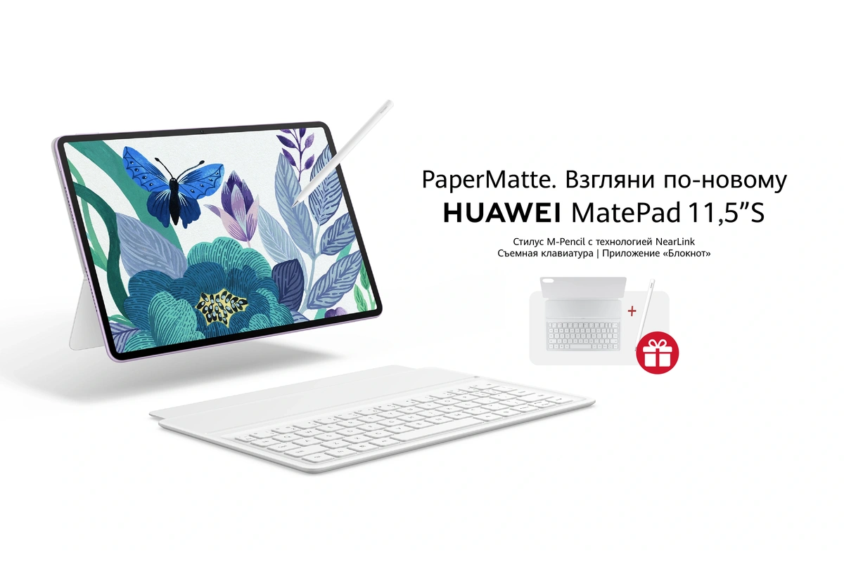 HUAWEI объявляет о шикарной новогодней акции: при покупке планшета HUAWEI MatePad 11,5″S до 31 декабря включительно можно получить в подарок фирменную съёмную клавиатуру Smart Keyboard и стилус M-Pencil. Такой комплект, как правило, продаётся отдельно, а сейчас идёт как «всё включено и готово к работе».