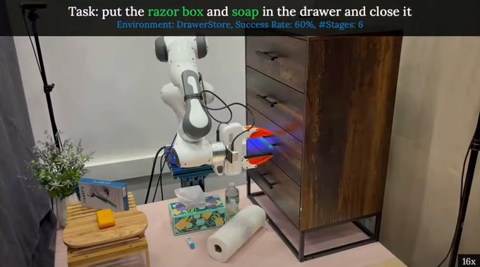По его словам, следующим шагом стало соединение компьютерного зрения и языковых моделей. Роботу можно сформулировать задачу на естественном языке — например, «положи ручку на стол» или «положи мышку в ящик и закрой его». Система разбивает инструкцию на подцели, выполняет их последовательно и взаимодействует с предметами.