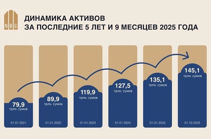 Активы банка достигли 145,2 трлн сумов, вклады — 49,2 трлн, собственный капитал — 19,4 трлн сумов. По итогам девяти месяцев 2025 года НБУ получил 1,4 трлн сумов чистой прибыли, сохранив первое место в секторе. Доля банка в общей прибыли банковского сектора составляет 13%.