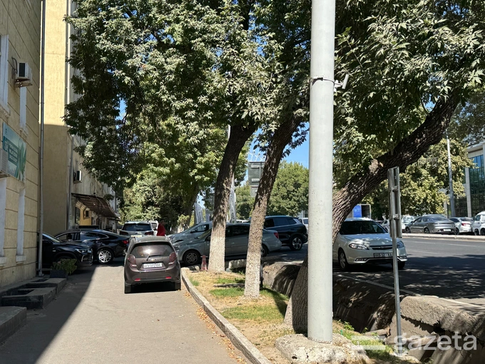 Другая проблема — водители повсеместно оставляют машины на тротуарах параллельно платной парковке, на островках, где стоянка запрещена, в заездах во дворы и, собственно, во дворах жилых домов. Потому что знают, что СБДД никаких мер воздействия принимать не будет. В центре Ташкента также есть улицы, где машины паркуются перпендикулярно, под запрещающими знаками и на тротуарах. Опять же, потому что ничего не будет.