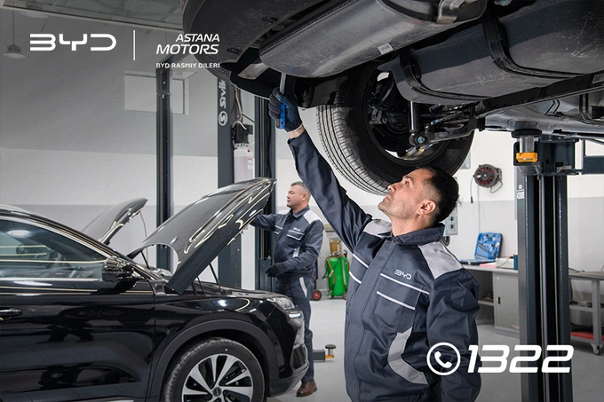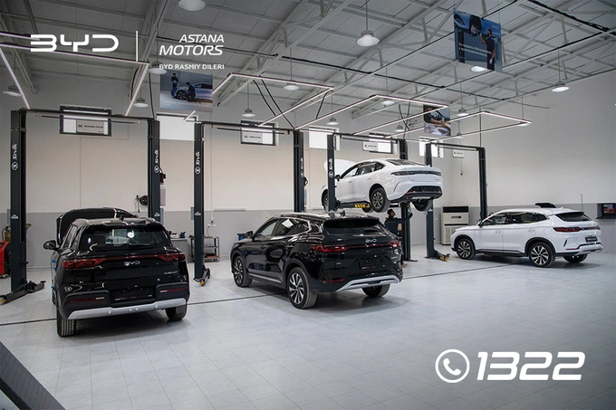 Сервисные центры BYD Astana Motors производят гарантийное, плановое и внегарантийное обслуживание, располагают современными кузовными цехами, оснащены специальным оборудованием и инструментарием для работы с гибридными и электромобилями. Специалисты прошли обучение и имеют сертифицированный доступ к работе с электро- и гибридными автомобиляии BYD.