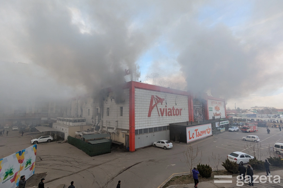 Крупный пожар произошёл в субботу в Ташкенте в здании торгового центра Aviator, где находятся супермаркет Korzinka, его большой склад, откуда выполняет заказы сервис доставки, кафе Le Taom, Aile, Yaponamama и детская площадка Pixel. На месте были корреспонденты «Газеты».