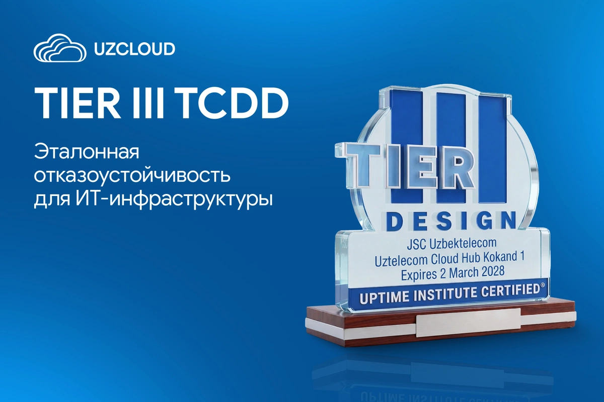 Новые дата-центры АК «Узбектелеком» получили международный сертификат Tier III TCDD. Облачный провайдер UzCloud предоставляет услуги на базе этой инфраструктуры. Сертификация от Uptime Institute официально доказывает отказоустойчивость наших решений.