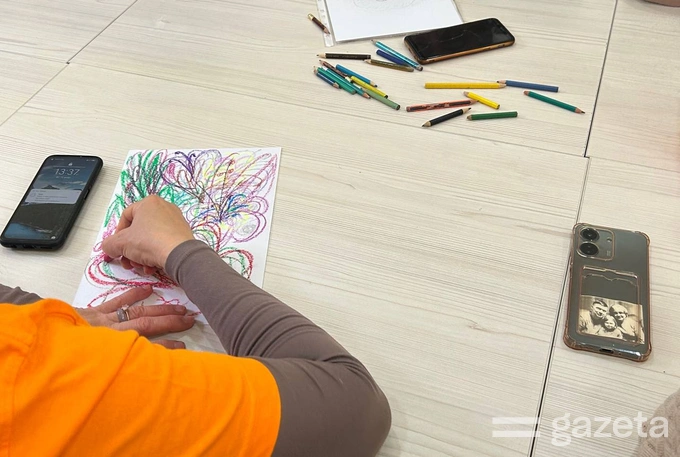 «Дело в том, что в молодости я занималась хореографией», — поясняет Людмила и тут же интересуется, скоро ли начнутся занятия по «рисованию» — так она называет арт-терапию.