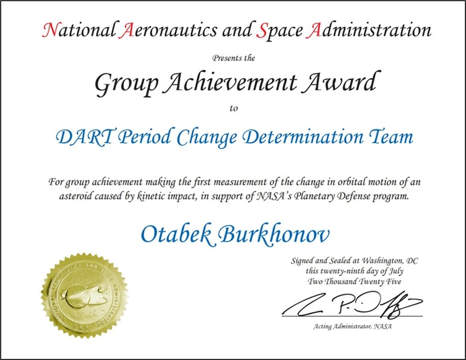 Главная | ОБЩЕСТВО | NASA наградило учёных Астрономического института имени Мирзо Улугбека