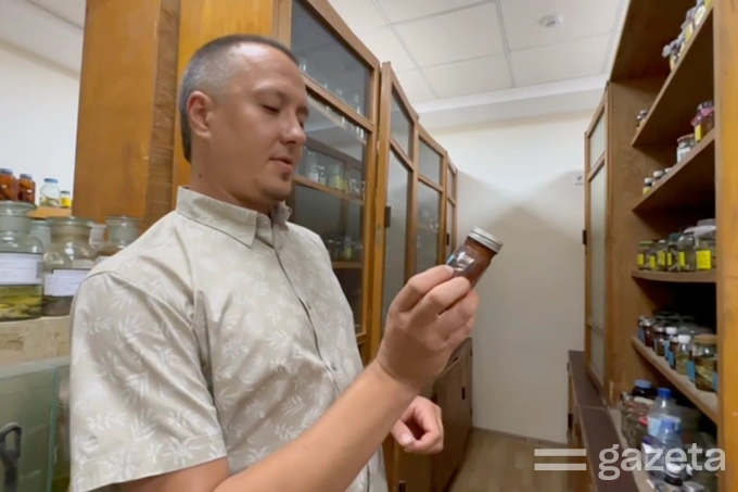 «Основная часть — из Узбекистана, и это как раз сборы команды во главе с Олегом Павловичем Богдановым. Когда он здесь работал, собиралось огромное количество экспонатов, и мы до сих пор разбираем банки, которые собирались тогда», — сообщил он.