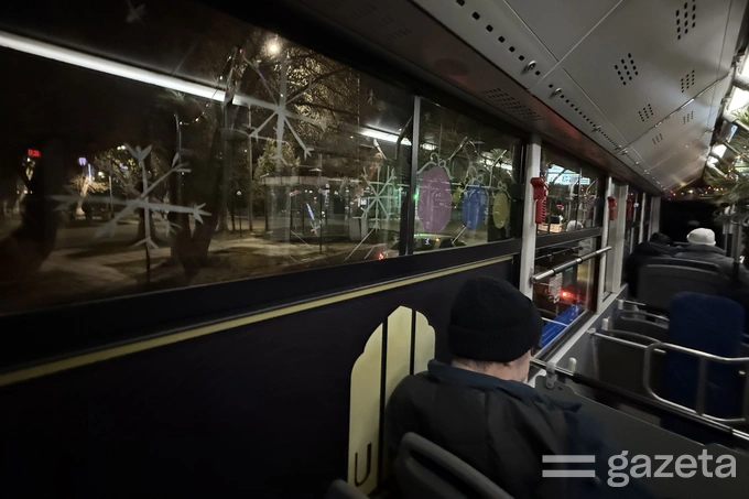 Едва автобус №24 подъезжает к остановке, его встречают радостные улыбки пассажиров. Они фотографируют автобус, благодарят водителя, дети подолгу рассматривают рисунки на окнах. За разрисованными стёклами мерцают уличные огни, проносятся заснеженные деревья и крыши. Обильный снегопад 20 декабря — редкий, долгожданный и почти волшебный — словно погрузил столицу в зимнюю сказку.