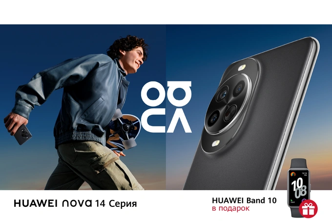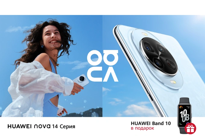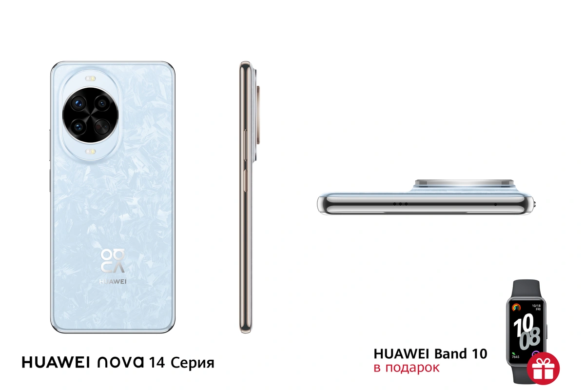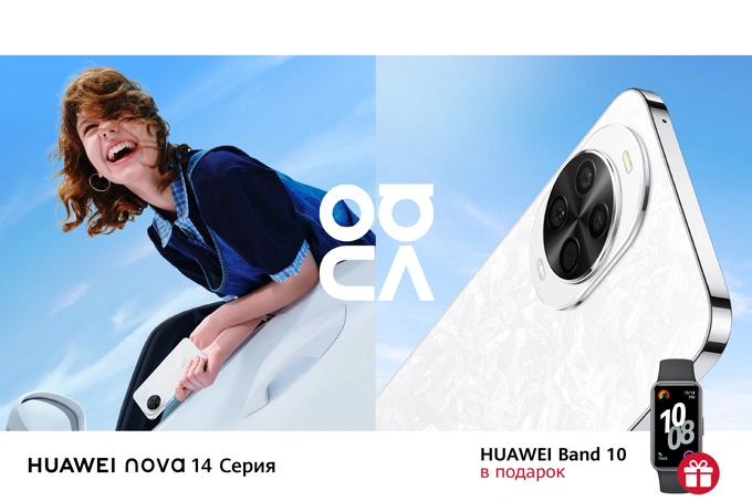 В период праздничных продаж HUAWEI запускает акцию, которая отлично подходит для подарка себе или близким: при покупке HUAWEI nova 14 или nova 14 Pro — в подарок умные часы HUAWEI Band 10. Такой комплект — смартфон и смарт-часы — выглядит особенно выгодно и празднично.