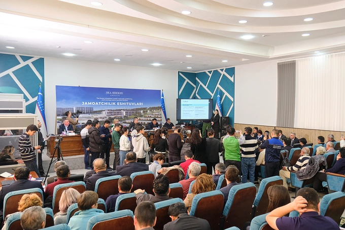 Мероприятие, организованное компанией Sea Breeze Uzbekistan в рамках процедуры оценки воздействия на окружающую среду, стал одним из первых масштабных открытий обсуждений проекта с участием местных сообществ.