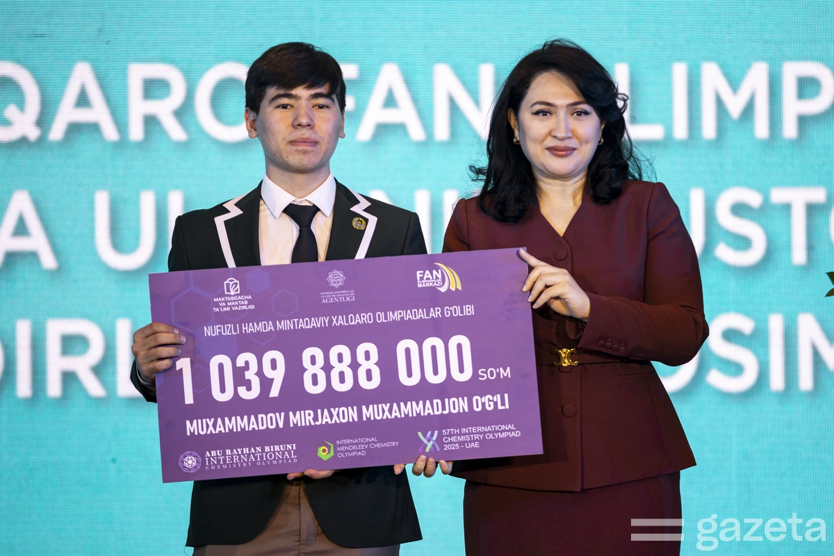 В этом году школьники Узбекистана приняли участие в 29 международных предметных олимпиадах и завоевали 210 медалей. В Ташкенте вручили денежные премии победителям и их учителям. Два школьника получили по 1 млрд сумов. На награждение из бюджета было выделено почти 12,5 млрд сумов. Репортаж «Газеты».