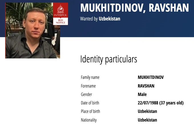 Власти Узбекистана объявили в международный розыск 37-летнего Равшана Мухитдинова. Его имя появилось в списке «красных уведомлений» на сайте Интерпола.