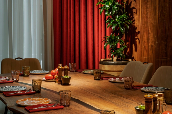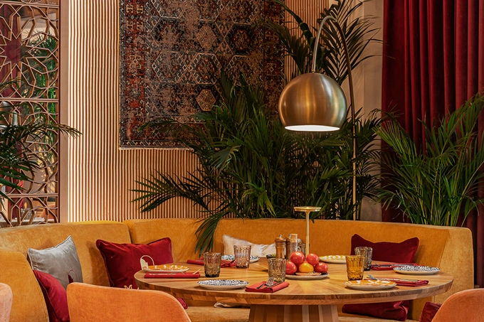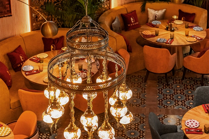 Maroon — это путешествие в мир разнообразной кухни, где традиции Иордании, Марокко, Ливана, Сирии, Турции, Грузии и Пакистана раскрываются в современном прочтении. Гостей встречает атмосфера Востока — открытая кухня с мангалом и дровяными печами, ароматы специй и интерьер, напоминающий роскошный дворец.
