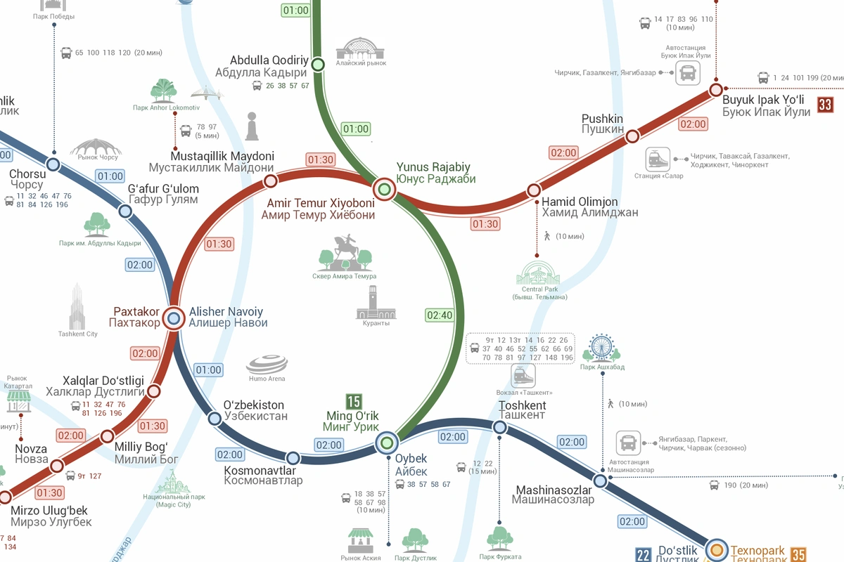 Фрагмент схемы метро проекта Tashtrans.uz.
